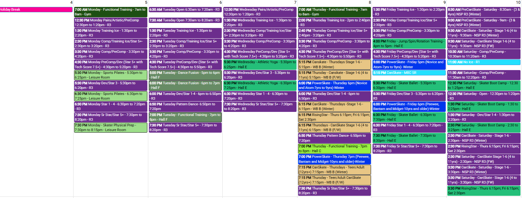 NSC Weekly Schedule for Jan 4th to 10th