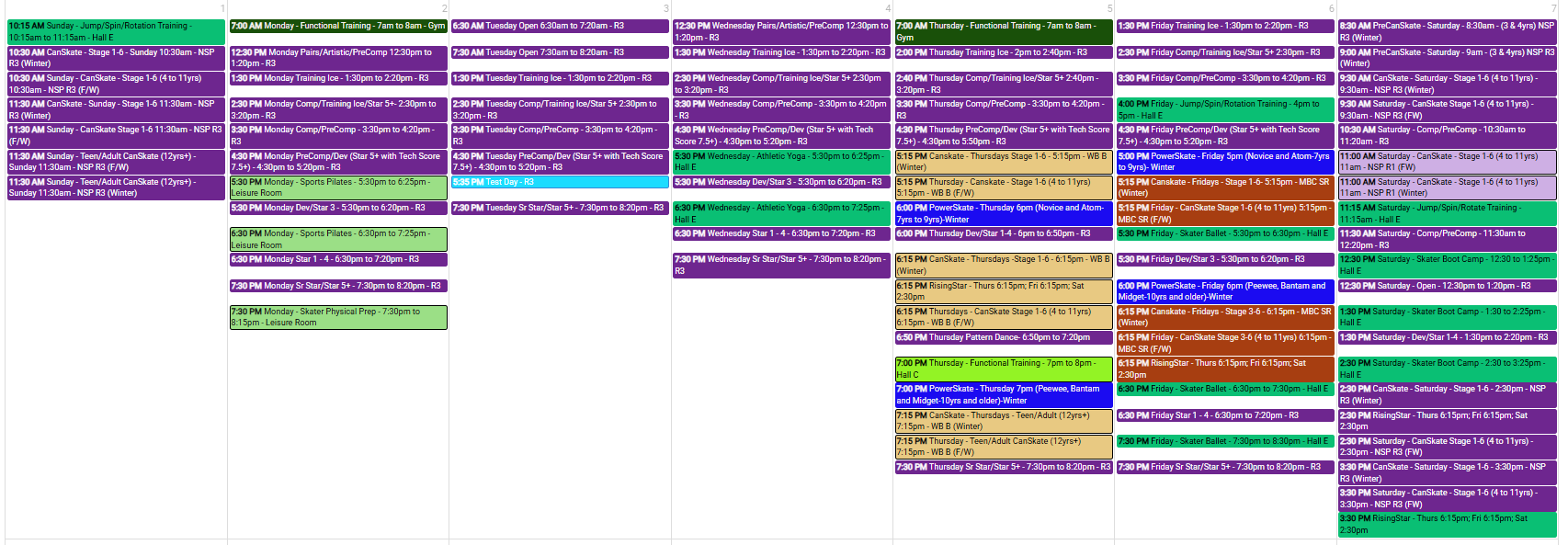 Please note the 1:30PM session on Feb 28th as well as the 3:30pm, 4:30pm & 7:30pm sessions on March 3rd have been added back to the schedule. You will need to register your skater as a drop in for these sessions.